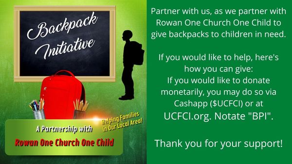 UCFCI has partnered with Rowan One Church One Child to provide backpacks for foster youth in Rowan County.